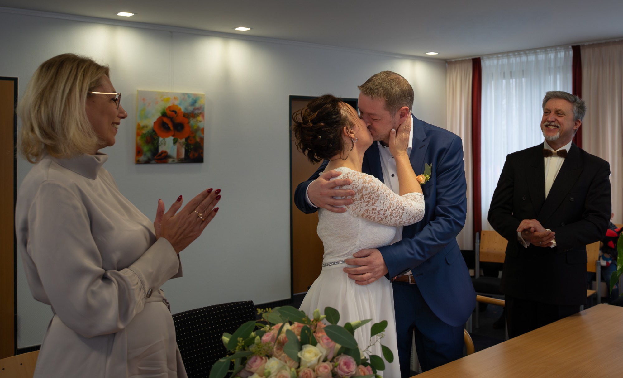 Eine standesamtliche Trauung ist für mich mehr als nur ein bürokratischer Akt oder eine Unterschrift – es ist der offizielle Startschuss für euer gemeinsames Abenteuer. Zwischen nervösem Herzklopfen im Flur, dem entscheidenden „Ja“ und dem ersten Sektkorken fange ich die großen Gefühle im kleinen Rahmen ein. Ohne Blitzgewitter während der Zeremonie, ohne Störfaktor – dafür mit dem Gespür für Blicke, die Bände sprechen. So entstehen Bilder, die diesen Meilenstein nicht nur dokumentieren, sondern für immer fühlbar machen.